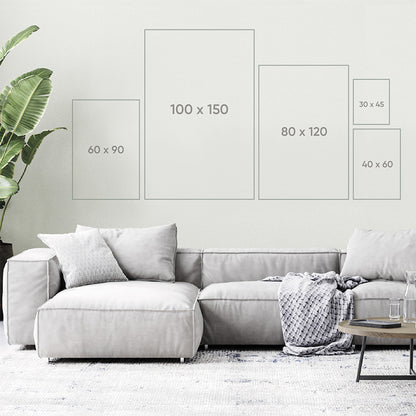 Als het gaat om kunst aan de muur, is het formaat belangrijk. Wanddecoratie te klein kopen zorgt ervoor dat het je niet tevreden bent omdat het wegvalt in de ruimte. Het ophangen van wanddecoratie is een geweldige manier om iets extra toe te voegen aan je ruimte. Je wilt dat je wanddecoratie opvalt, in het oog springt en de ruimte mooier maakt. Daarom raden wij altijd aan als je twijfelt tussen twee formaten om voor het grotere formaat te kiezen. Onze ervaring heeft ons geleerd dat een klein paneel de grote ruimte niet kan vullen. Wanddecoratie vult meestal een groot deel van een lege muur en komt in verhouding te hangen met het meubilair. Dus ons advies, bij twijfel, ga voor groot!