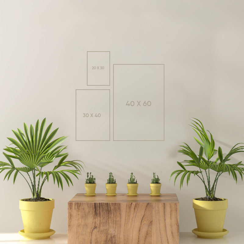 Als het gaat om kunst aan de muur, is het formaat belangrijk. Wanddecoratie te klein kopen zorgt ervoor dat het je niet tevreden bent omdat het wegvalt in de ruimte. Het ophangen van wanddecoratie is een geweldige manier om iets extra toe te voegen aan je ruimte. Je wilt dat je wanddecoratie opvalt, in het oog springt en de ruimte mooier maakt. Daarom raden wij altijd aan als je twijfelt tussen twee formaten om voor het grotere formaat te kiezen. Onze ervaring heeft ons geleerd dat een klein paneel de grote ruimte niet kan vullen. Wanddecoratie vult meestal een groot deel van een lege muur en komt in verhouding te hangen met het meubilair. Dus ons advies, bij twijfel, ga voor groot!